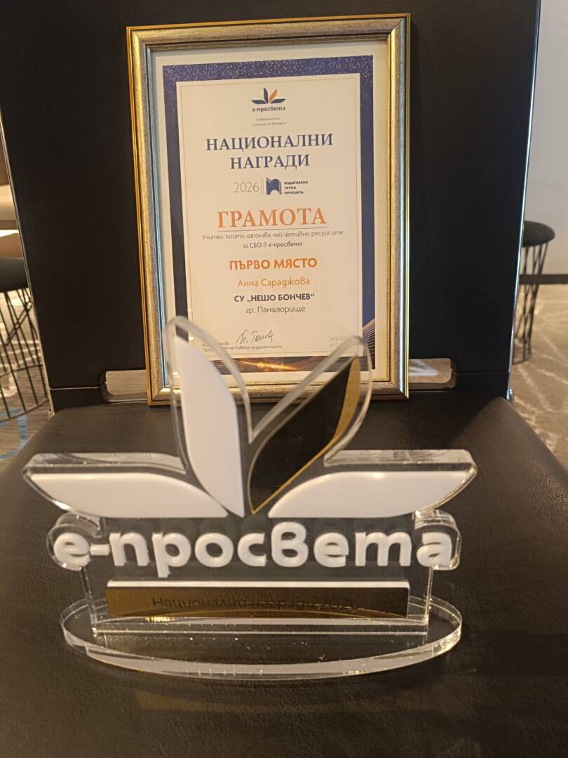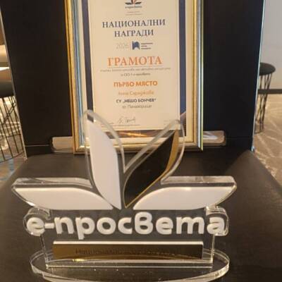 Първа награда на „Е-просвета“ в категория „Учител, използващ най-активно ресурсите на социално-емоционалното обучение“ бе присъдена на Анна Сараджова – учител в начален етап в СУ „Нешо Бончев“.